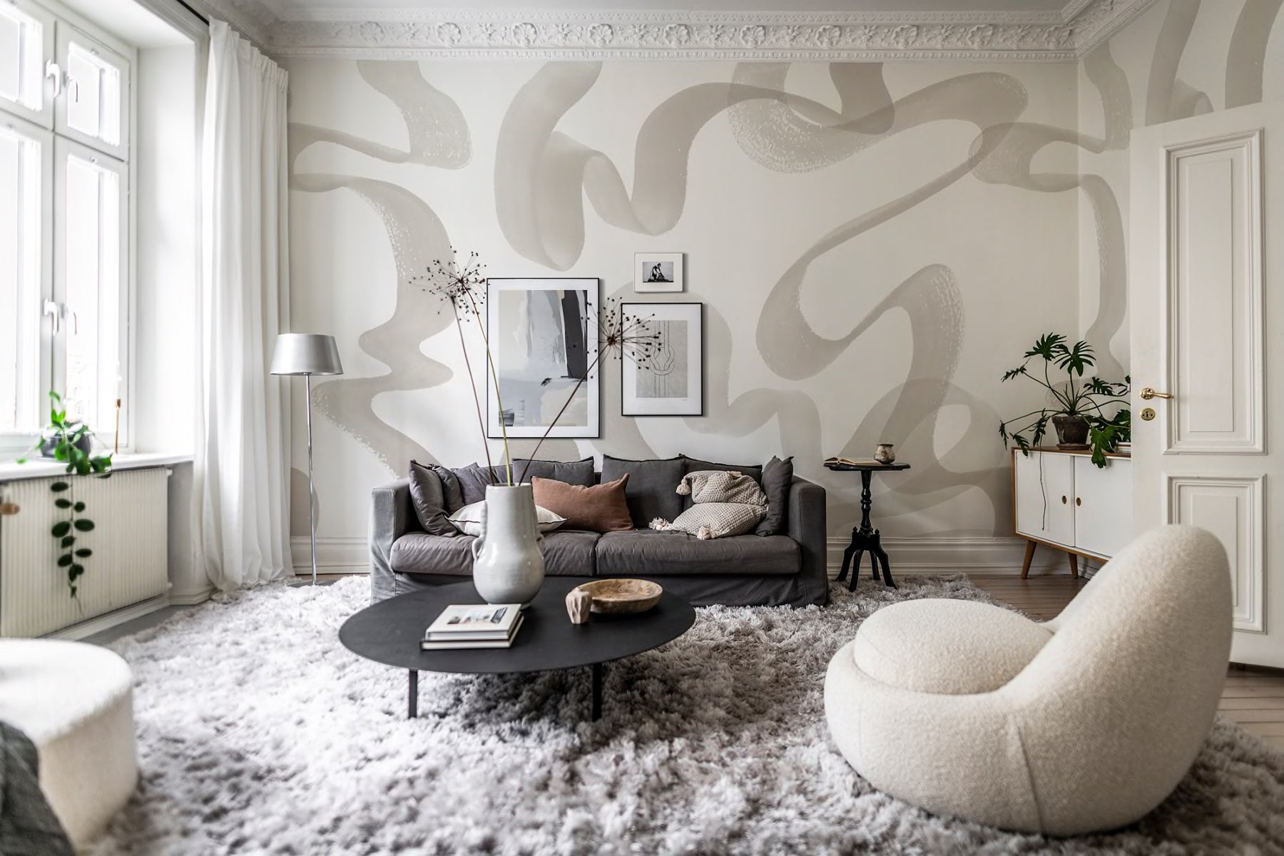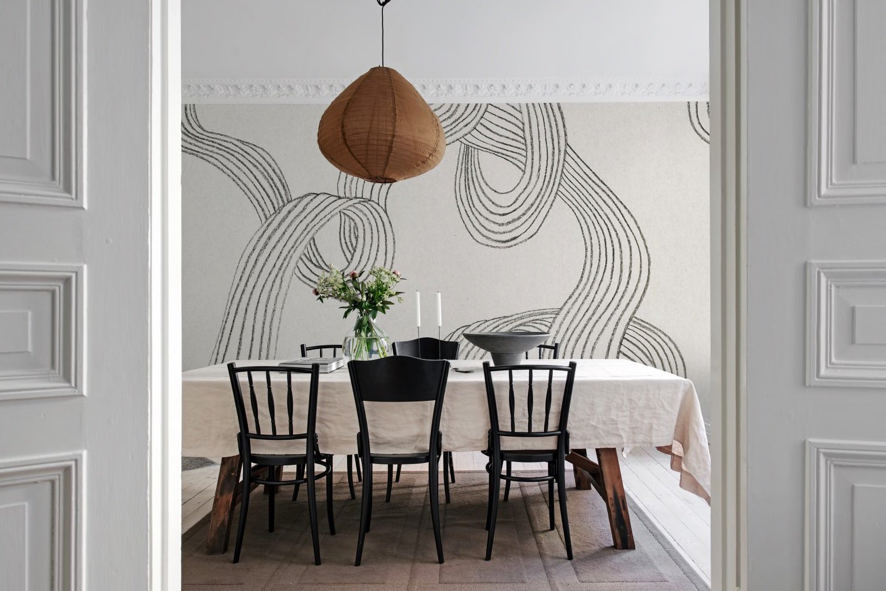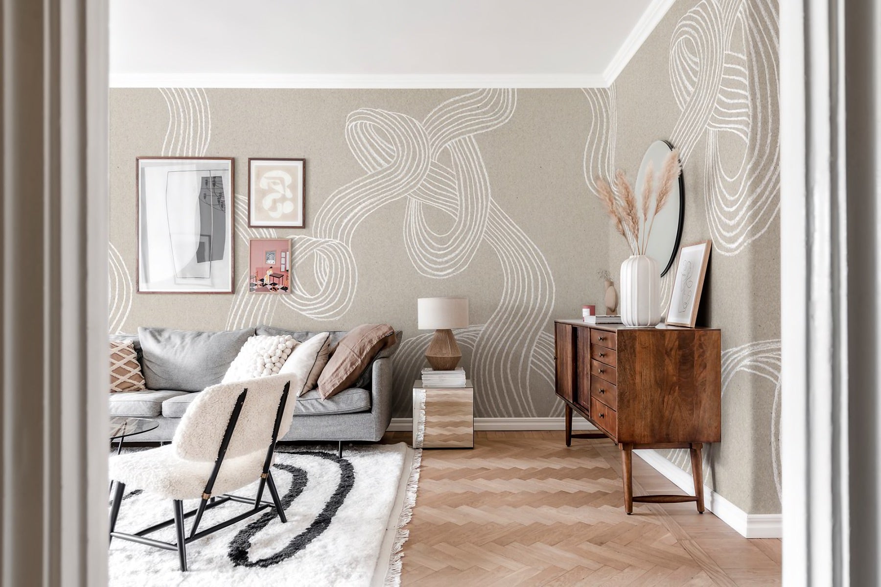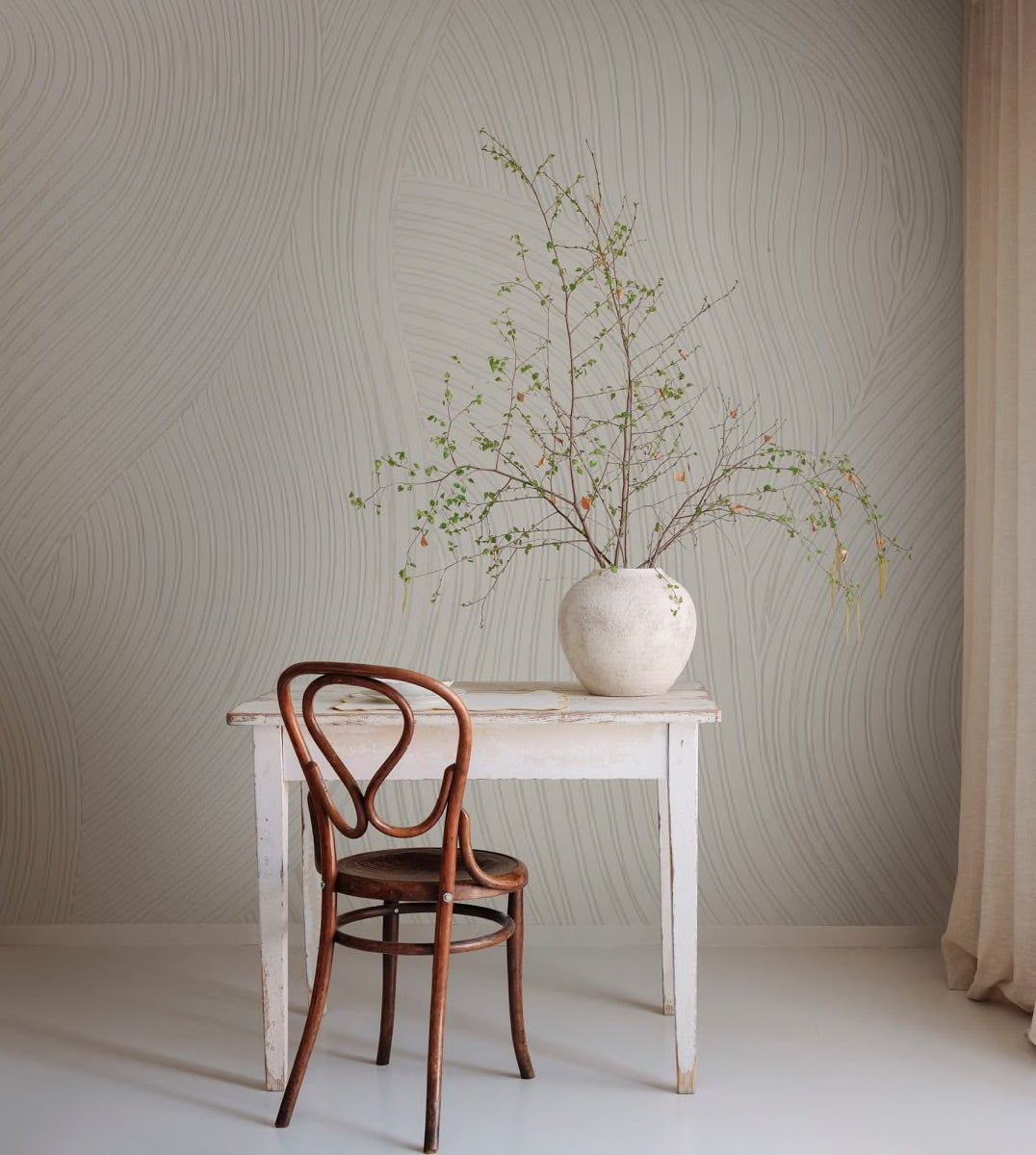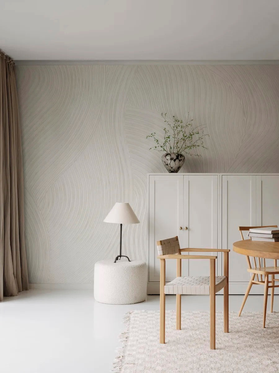 This wallpaper is crafted by hand in clay and then digitally scanned to create a remarkable design. It beautifully showcases the fusion of traditional craftsmanship with cutting-edge printing technology. The clay lines exhibit a calming organic pattern, and the texture of the raw material entices you to touch the surface. In simple terms, it's truly captivating!