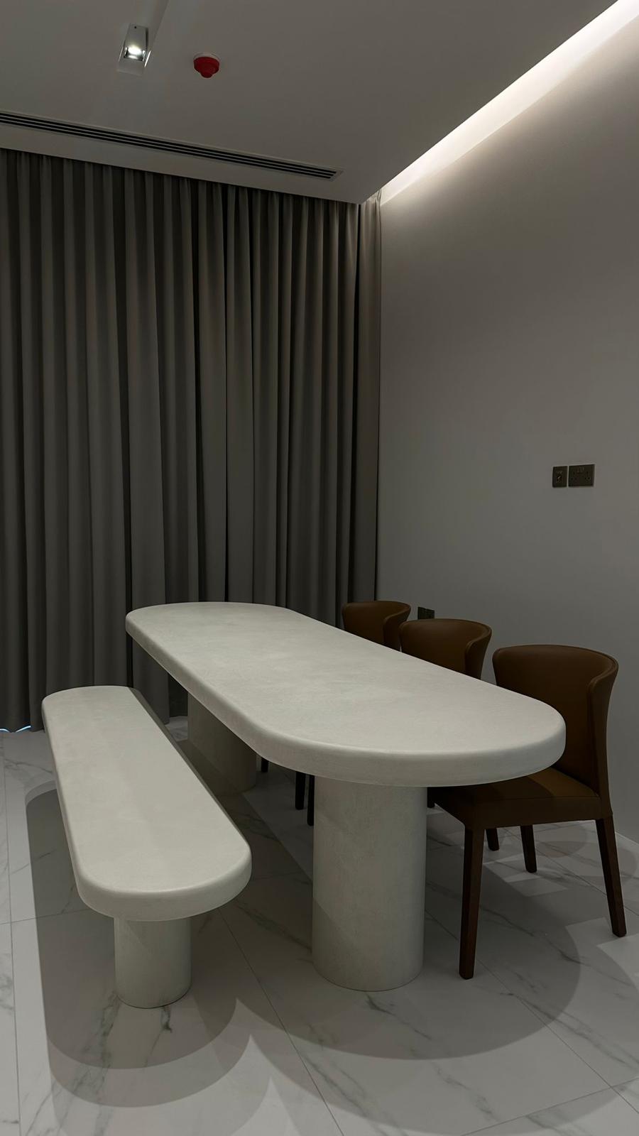 This table is a part of the concrete plaster collection, featuring a raw concrete finish. It effortlessly adds a natural aesthetic to any indoor or outdoor area, making it a beautiful and versatile addition.